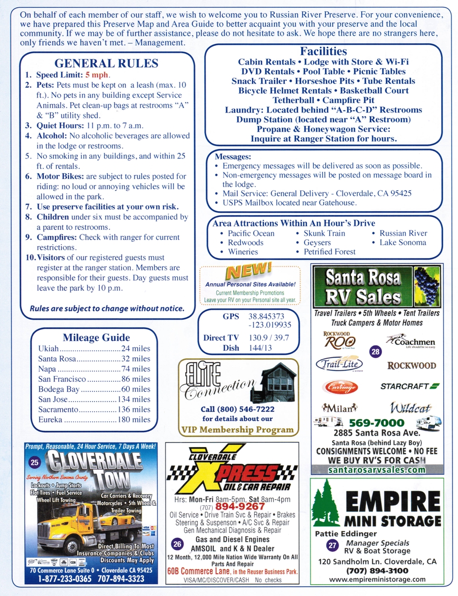 Here is a recent sample of one of Trails End Publications fantastic campground maps. This is an outstanding value for the merchants who advertise because it answers the "Where do I go for (just about anything) around here?" which is constantly asked by the campground's thousands of visitors!
